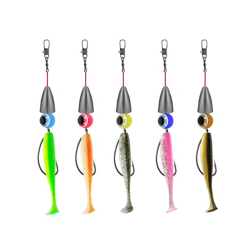 Leurres souples, hameçons crank 1#, émerillons et plombs fournis. Montage facile en 2 minutes : enfilez le leurre, attachez l'émerillon, et c'est parti. Parfait pour personnaliser votre ligne selon les conditions.